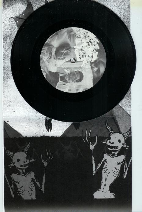 AQUARIUS RECORDS REVIEW: Totally ass kicking and weirdly fucked brutality fills this little 7" from Santa Cruz's own, A Fashionable Disease! Another one of those what the fuck, seemingly impossible combinations of influences, synthesized in such a unique and successful way, that makes us kind of scratch our heads and lament that we haven't been turned on sooner. How do you describe this? Maybe filthyfreejazzcrustyfiedsatanicdamagedgrindpunkavantskronk? Or maybe just Crass meets Ayler meets Pig Destroyer meets Sun Ra meets Schoenberg meets Anal Cunt meets Mahavishnu. We don't fucking know, but it rules! Super demented, ultra damaged grind-jazz, complete with horn section! Putrid angular metallic guitar discordance, feculent terrorist manifesto screeched vocals, growling horns, blasting drums. The first cut, "Veal Medallions" starts with a blast of feedback before hurling into a psychotically chromatic guitar and piano line, ending up in a blasting tumult of throat tearing vocals and frenetically crazed drumming! Some of the lyrics from this number kind of sum up what these fellas are about... "skulls converge ruins/ rainbows ejaculate onto your face/ quiet in the piss-stained evening/ spring wind blows perfume of 1,000 rotting carcasses...". Fuck yes. The rest of the 7" is just as killer. Totally fucked and totally great! For fans of Zorn, Bathtub Shitter, Rudimentary Peni, Crass, Coltrane, Dystopia, Cecil Taylor, or anything filthy, proggy, grindy, avant-jazzy, and totally shredding! Recommended!